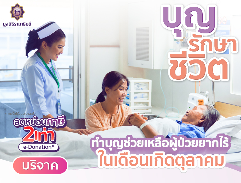 “โครงการเพื่อผู้ป่วยยากไร้” เกิดจากความตั้งใจที่จะช่วยเหลือผู้ป่วยโรงพยาบาลรามาธิบดีที่ไม่สามารถรับภาระค่าใช้จ่ายในการรักษาพยาบาลได้ และรับโอกาสเข้าถึงการรักษาอย่างมีประสิทธิภาพ ***สามารถลดหย่อนภาษี 2 เท่า e-Donation มูลนิธิรามาธิบดีฯ บริการส่งข้อมูลให้กรมสรรพากร
