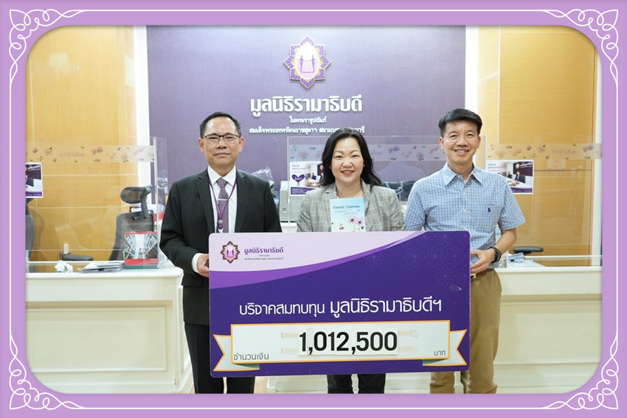 พญ.หฤทัย ไกรวพันธุ์ บริจาคเงิน 1,012,500 บาท สมทบทุนมูลนิธิรามาธิบดีฯ ทุนผู้ป่วยยากไร้โรคมะเร็ง จากการขายหนังสือ “Cancer Survivor” รับมอบโดย รศ. นพ.ประกาศิต จิรัปปภา กรรมการบริหารมูลนิธิรามาธิบดีฯ ณ ห้องรับรองมูลนิธิฯ ชั้น 4 อาคารสมเด็จพระเทพรัตน์ วันพุธที่ 29 มีนาคม 2566