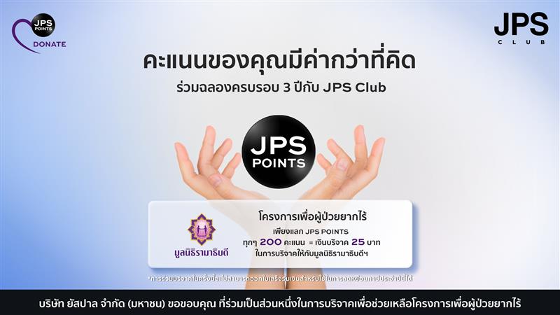 ร่วมฉลองครบรอบ 3 ปีกับ JPS CLUB ด้วยการแลกคะแนนเพื่อร่วมบริจาคกับโครงการเพื่อผู้ป่วยยากไร้ของมูลนิธิรามาธิบดีฯ
