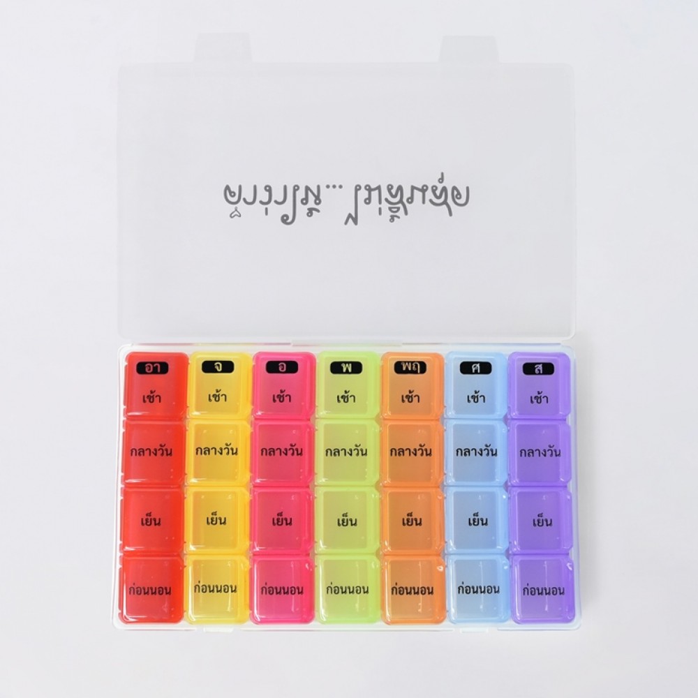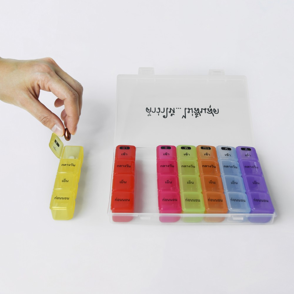 - กล่องยา 28 ช่อง ทำจากพลาสติก Food grade