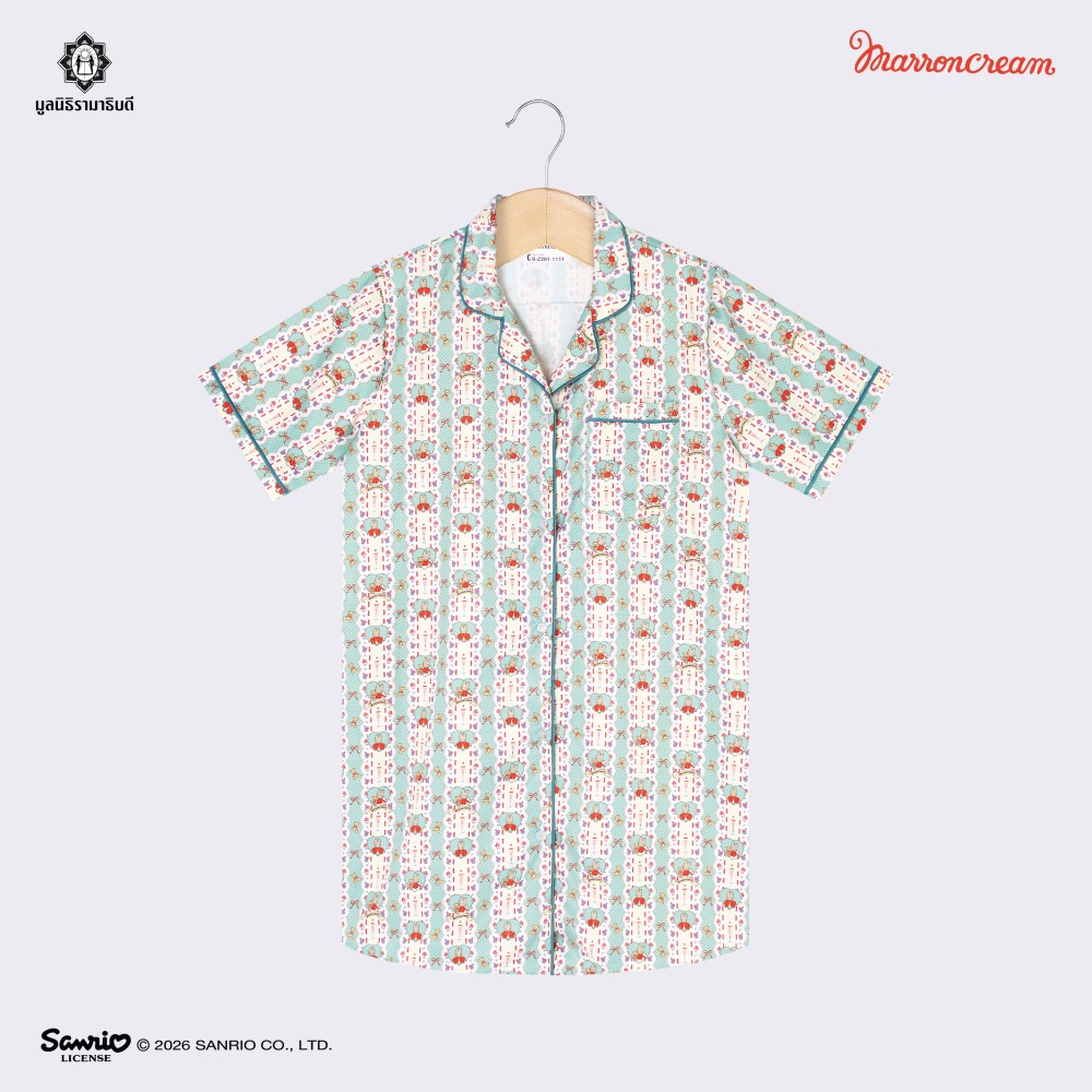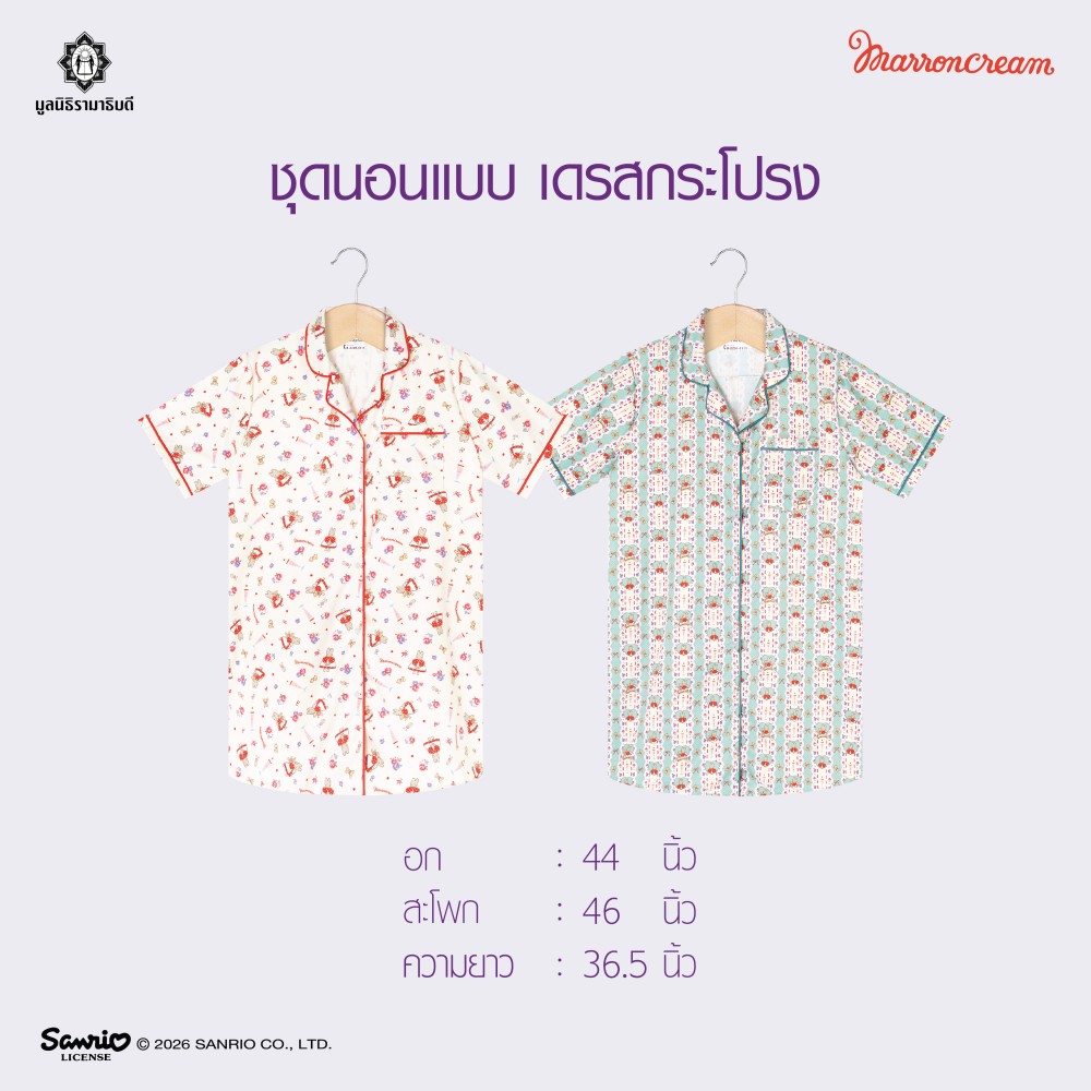 - ชุดนอนแบบตัวยาว ผ่าหน้าติดกระดุม ขนาดฟรีไซส์