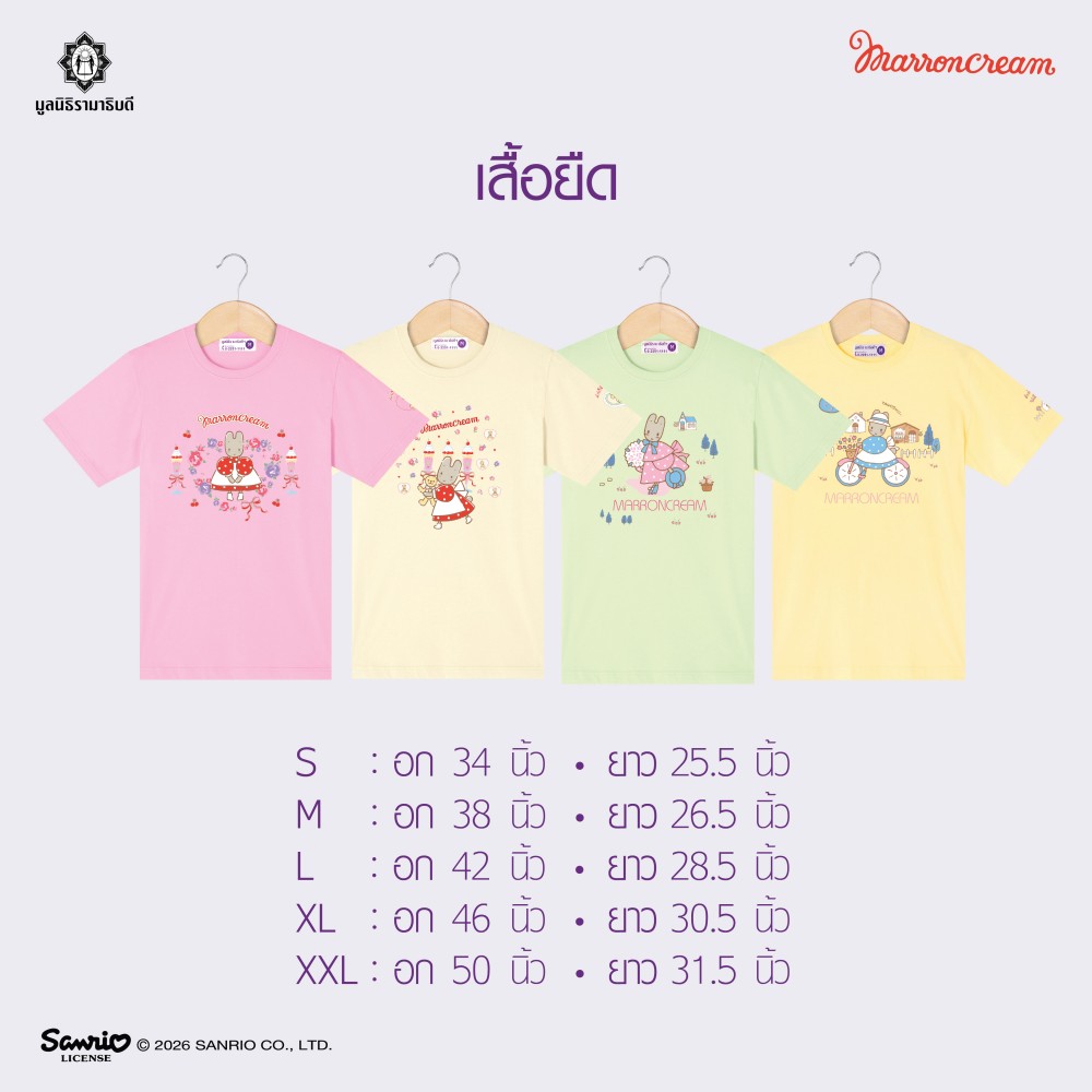 หมายเหตุ ขนาดเสื้ออาจมีการคลาดเคลื่อน +/- 1 นิ้ว จากตารางไซส์